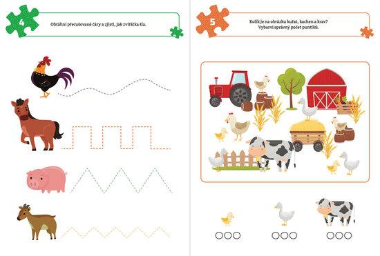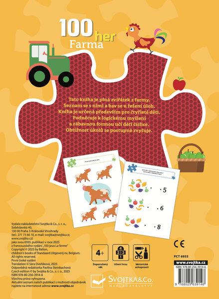 Kniha je plná zvířátek z farmy a krátkých her, při jejichž řešení se děti zabaví opravdu na dlouho. Kniha obsahuje rovných 100 her a je určená především pro čtyřleté děti. Podněcuje k logickému myšlení a zábavnou formou učí děti číslice. Obtížnost úkolů se postupně zvyšuje. Děti si tak mohou procvičit poznávání zvířat z farmy, postřeh, učení čísel, psaní, řešení problémů a motorické schopnosti.