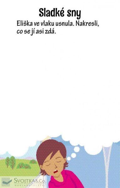 Nakresli bandity, kteří přepadli vlak a cestující. Spočítej, kolik kroužků dokážeš najít na obrázku. Sleduj zamotané koleje a zjisti, který vlak vyjel z nádraží. Dokresli druhou půlku vlaku a strojvůdci domaluj vlasy, oči, nos a pusu. Přiřaď zavazadla k jejich majitelům. Tato krabička obsahuje ...