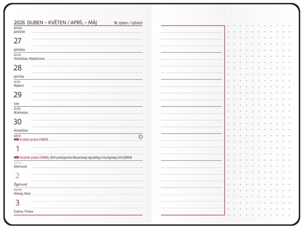 Objevte spojení stylu a praktičnosti s naším 18měsíčním diářem! Elegantní barevná obálka s parciálním lakem upoutá na první pohled, zatímco praktická stužka a gumička udrží vaše plány pod kontrolou. Mějte své cíle a úkoly vždy po ruce – ať jste kdekoli. Perfektní společník na více než rok, který vnese do každého dne inspiraci a řád.
