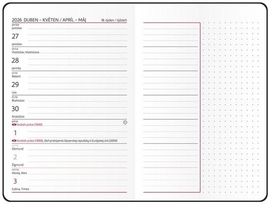 18měsíční týdenní diář 2026 Lungo B6 Růže