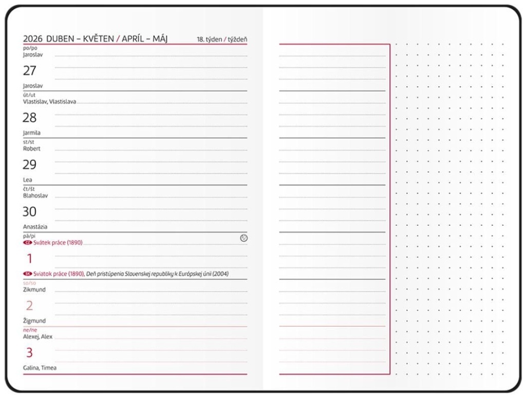 Objevte spojení stylu a praktičnosti s naším 18měsíčním diářem! Elegantní barevná obálka s parciálním lakem upoutá na první pohled, zatímco praktická stužka a gumička udrží vaše plány pod kontrolou. Mějte své cíle a úkoly vždy po ruce – ať jste kdekoli. Perfektní společník na více než rok, který vnese do každého dne inspiraci a řád.