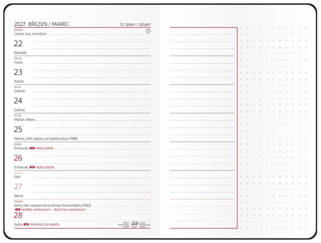 18měsíční týdenní diář 2027 Lungo B6 Pomněnka