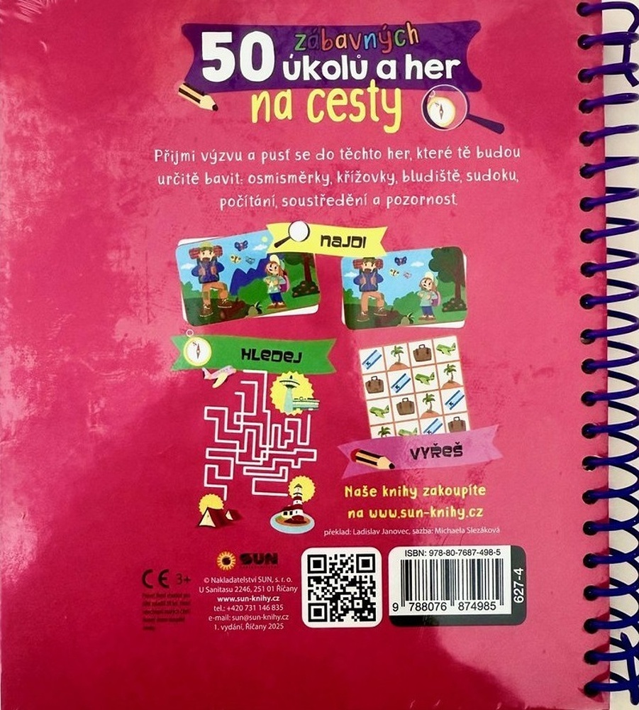 50 hádanek pro děti – každá stránka obsahuje zábavný úkol nebo cvičení. Úkoly zapojují kreativní myšlení dětí, rozpoznávání vzorů, soustředění a jazykově-prostorové dovednosti. Sešit klade důraz na prožitek a zároveň zachovává běžné, známé typy hádanek. Úkoly jsou strukturovány tak, aby děti postupovaly po malých krůčcích a zažily rychlý pocit úspěchu, který je láká k přechodu na další stránku – ideální pro každodenní „mini trénink“.