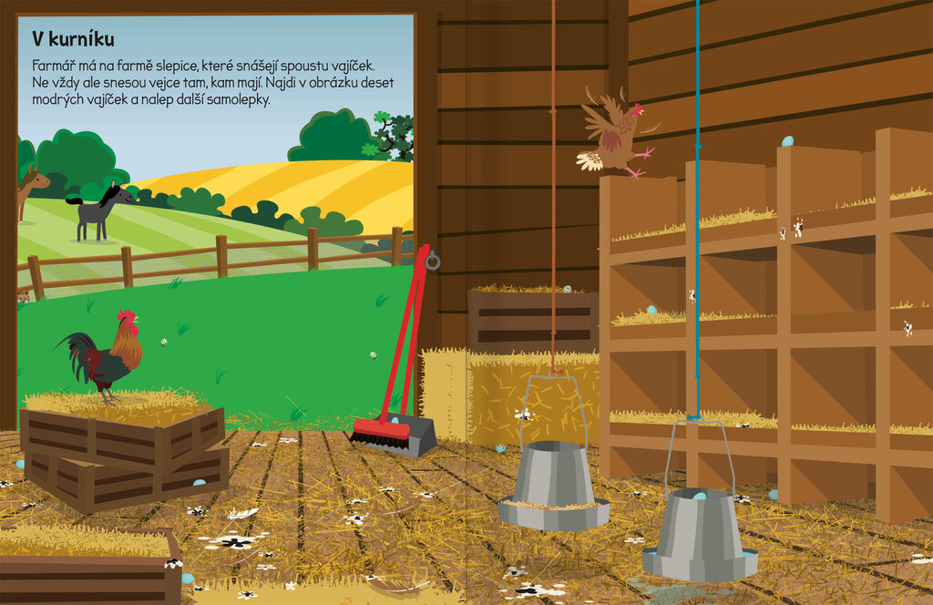 Více než 555 samolepek čeká na tebe a tvou představivosti v tomto úžasném sešitě! Vyhrň si rukávy a vrhni se do práce na farmě, kde je vždy co dělat! Pomoz farmáři pochytat hladové kozy a nezbedná selata, sklidit úrodu na poli, zasadit stromy či během zimy odklidit sníh. Doplňuj podle vlastní fantazie nepřeberné množství samolepek do nápaditých a legračních scenérií a poznej tak prostředí a veselé obyvatelé farmy.
