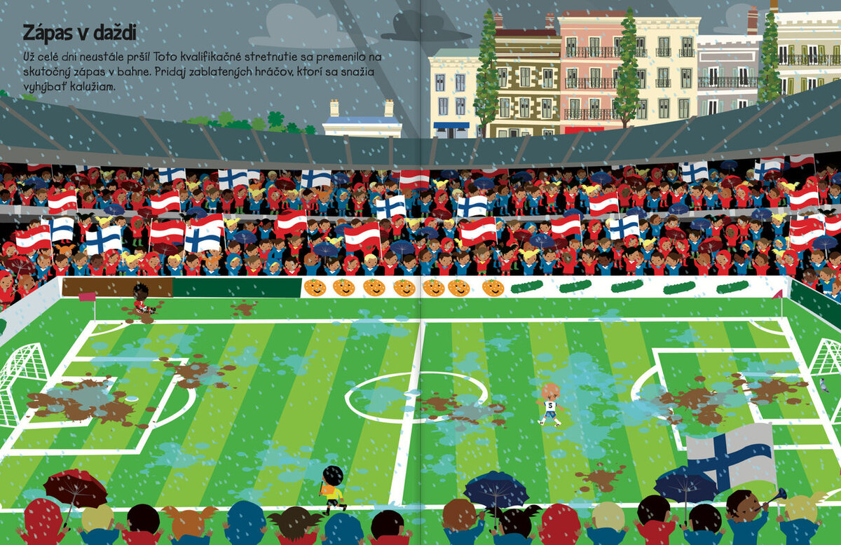 Viac ako 555 samolepiek čaká na teba a tvoju predstavivosť v tomto úžasnom zošite! Od prvých kvalifikačných zápasov a ciest na zápasy až po náročné tréningové prípravy a napínavé veľké finále! Obuj si kopačky a priprav sa na poriadnu kopu zábavy! Dopĺňaj podľa vlastnej fantázie nespočetné množstvo samolepiek do nápaditých a detailných scenérií a dokonca si môžeš zahrať futbalové majstrovstvá podľa svojej predstavivosť.