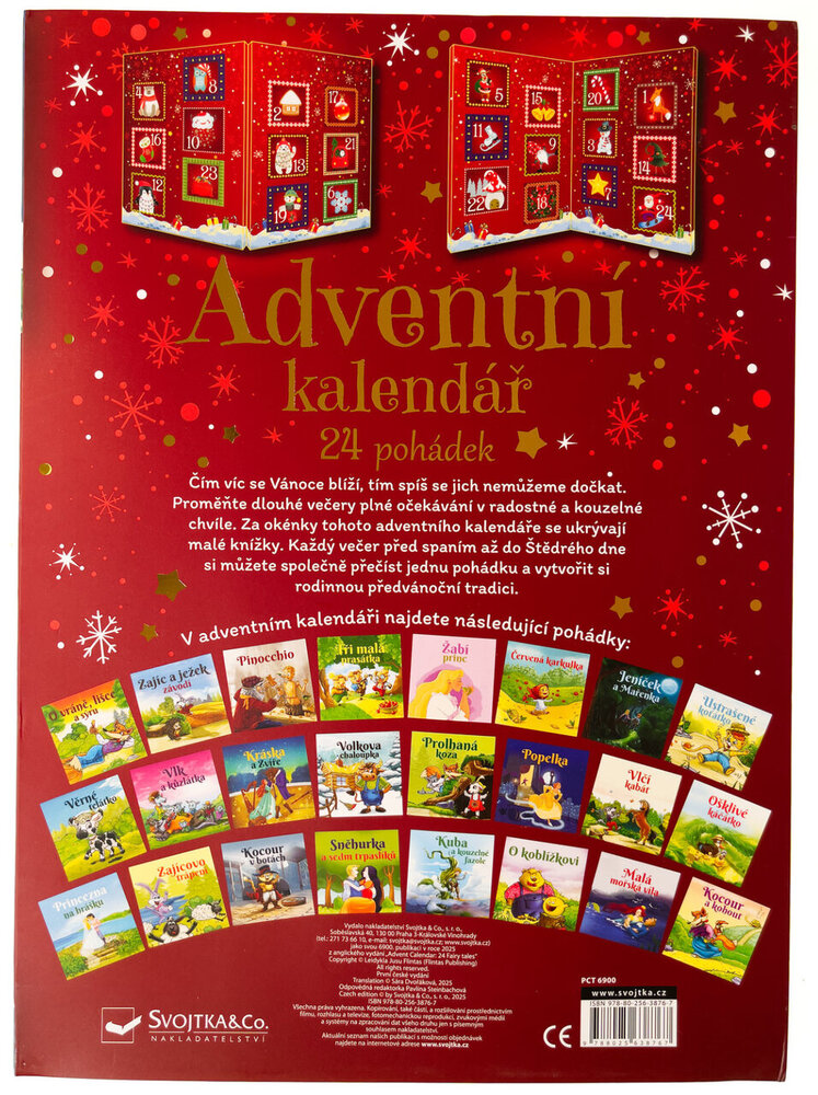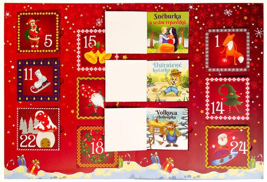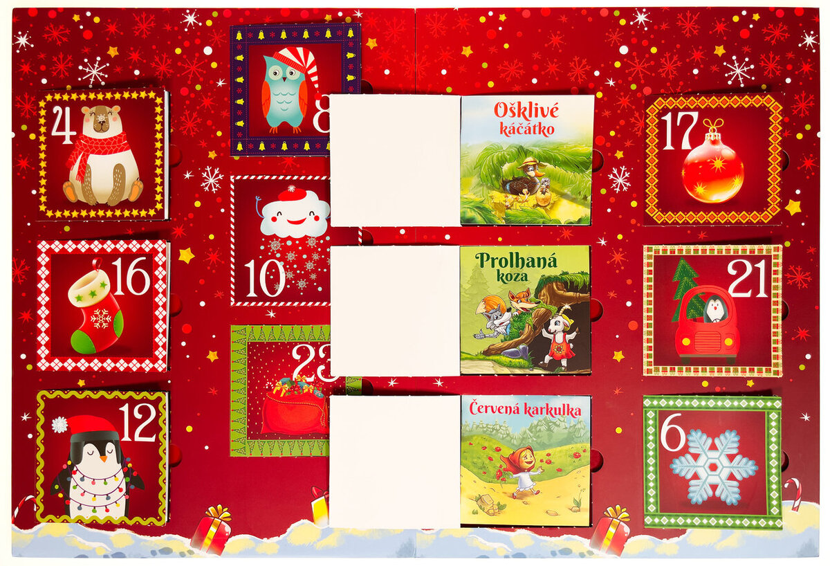 Čím víc se Vánoce blíží, tím spíš se jich nemůžeme dočkat. Proměňte dlouhé večery plné očekávání v radostné a kouzelné chvíle. Za okénky tohoto adventního kalendáře se ukrývají malé knížky. Každý večer před spaním po celý prosinec až do Štědrého dne si můžete společně přečíst jednu pohádku a vytvořit si hezkou rodinnou předvánoční tradici. Uvnitř kalendáře najdete 24 okének se známými pohádkami, například Ošklivé káčátko, Popelka, O koblížkovi, Tři malá prasátka, Vlk a kůzlátka nebo Princezna na hrášku.