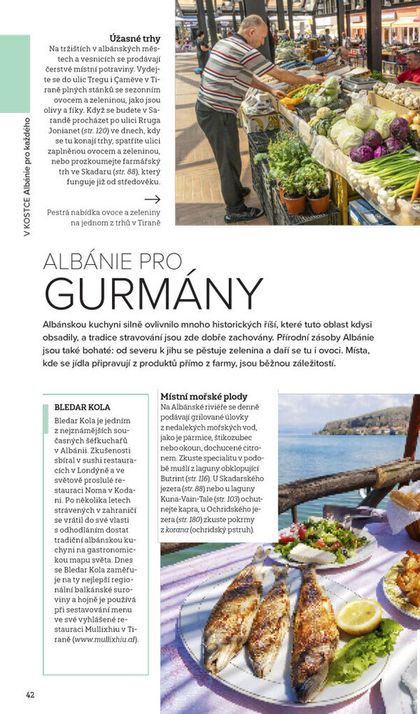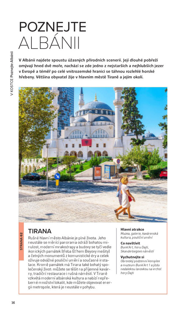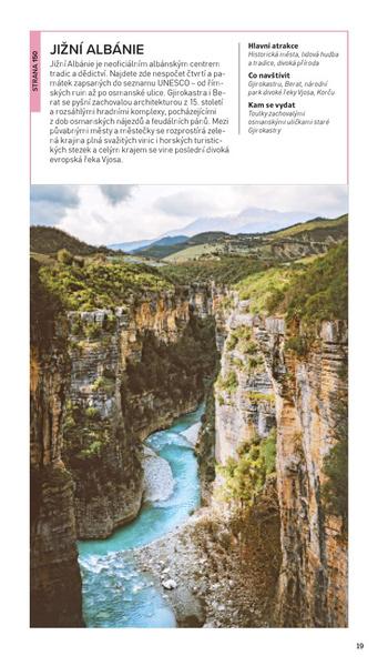 Impozantní horské hřebeny, průzračné moře, čistá jezera, nádherné pláže a divoká příroda, to jsou hlavní albánské trumfy, které do země přitahují tisíce turistů. Barvitá kultura a pohostinnost místních obyvatel vás ale příjemně překvapí. Vystřídejte odpočinek na pláži návštěvou Tirany, Gjirokastry nebo Beratu anebo vyrazte na úchvatnou řeku Vjosu či do národních parků Theth a Valbona. Podrobné popisy, poutavé fotografie, prostorové kresby památek, praktické mapy i řada tipů vám pomohou k sestavení perfektního itineráře, pokud se vám zrovna nebudou hodit ty, které najdete v průvodci.