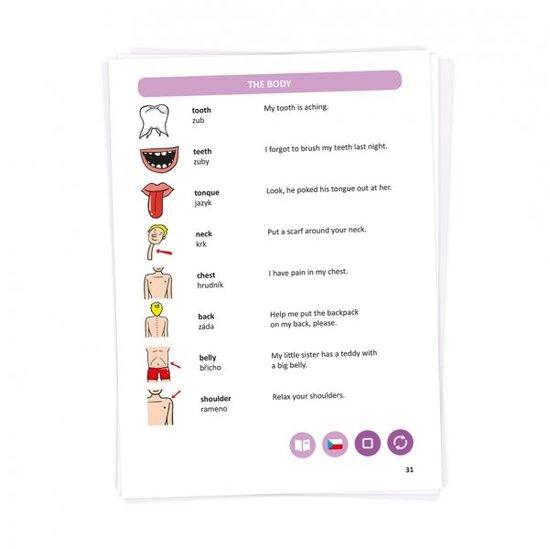Pomocí této knihy se děti zábavnou formou učí základní anglická slovíčka a jednoduché věty. Slovník je rozdělen do 11 tématických kapitol, které obsahují přes 1000 anglických slovíček včetně obrázků, a je doplněn kompletním českým překladem.