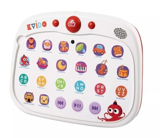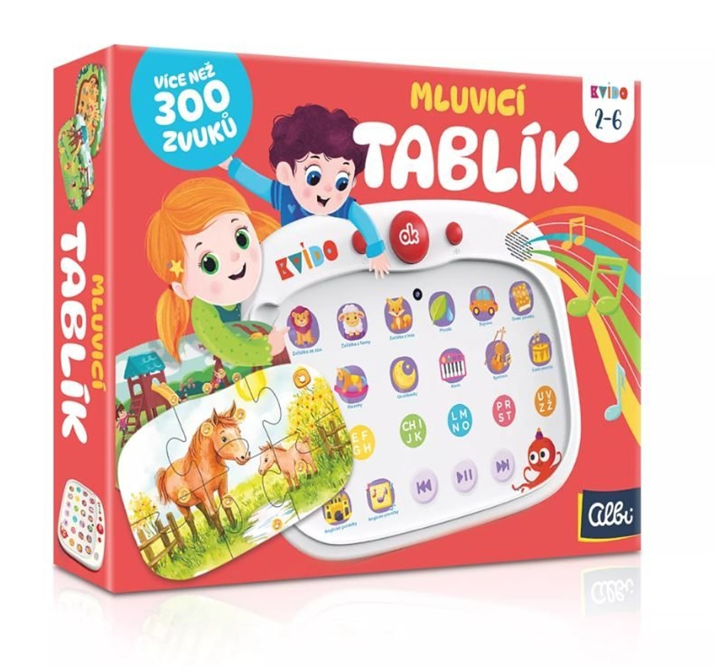 Unikátní novinka pro děti od 2 do 6 let – dotyková tabulka se zvuky a kvízy. Tablík, který je v českém jazyce, je doplněn o pohádky a písničky v angličtině.