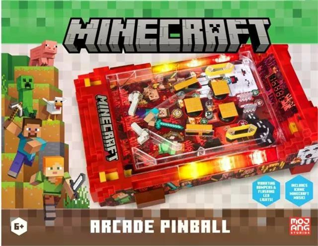 Minecraft Arcade Pinball – Nether nabízí spojení tradičního pinballu s ikonickou nether tématikou z Minecraftu. Hráč se snaží dosáhnout nejvyšího skóre, v porostředí Netheru. LED skóre a autentické zvukové efekty podtrhují arcade zážitek. Temné barvy, lava efekty a pixelová grafika dotvářejí atmosféru známou z populární hry.