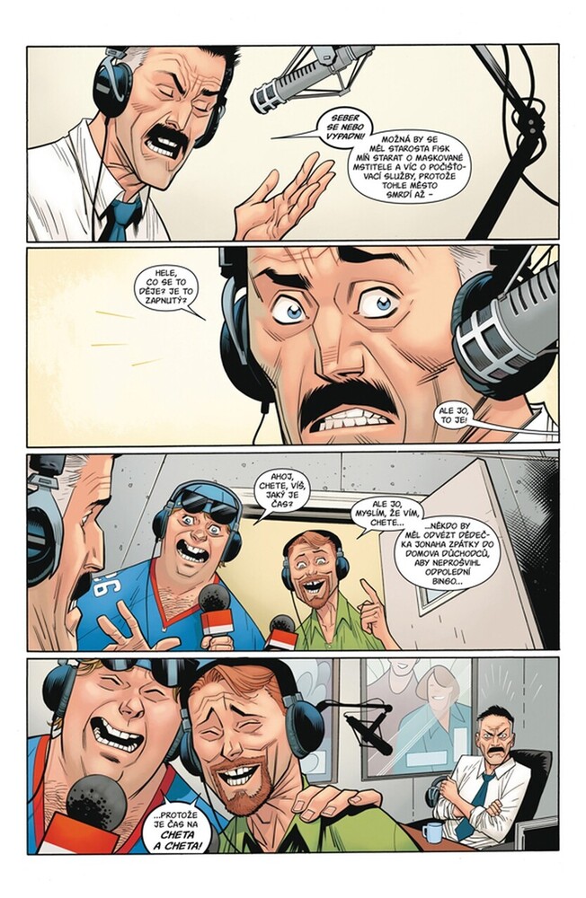 Mezitím J. Jonah Jameson začíná nový život jako moderátor podcastu – a jeho prvním hostem je Spider-Man! JJJ a Spidey už spolu nějakou dobu mají docela dobré vztahy, takže je jen příznačné, že se to všechno „Jásající“ Jonah pokouší zlikvidovat, a přitom ještě ohrozí celé město. Navíc se do příběhu vloží zbrusu nové padoušské kasino a především Boomerang, jehož dlouho skrývané tajemství konečně vyplave napovrch… s obrovskými (doslova) důsledky!