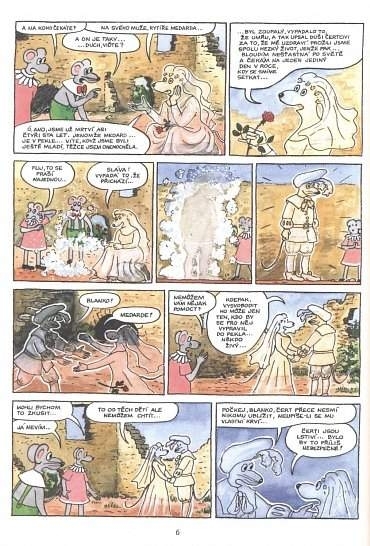 Čtvrtý svazek Sebraných myšek zahrnuje příběhy z let 1996 - 1998. Zavede nás samozřejmě zase do domovského Ušína, třeba do jeho tajemného podzemí, vynese nás do oblak v balónu, přenese do alchymistovy dílny v pohádkové minulosti, ale také až do předpeklí, kam se odvážné myšky vydají zachraňovat zesnulého rytíře Medarda. Tam i všude jinde budou Anča s Pepíkem pátrat, zkoumat, objevovat, řešit, zachraňovat, vynalézat a odhalovat a vy můžete být u toho!
