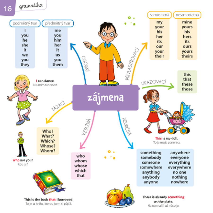 Gramatická pravidla anglického jazyka, slovíčka a konverzace jsou přehledně a jednoduše vysvětleny pomocí názorných a logicky uspořádaných myšlenkových map. Prostřednictvím barevných schémat je osvojení angličtiny snadnější, efektivnější a zábavnější.