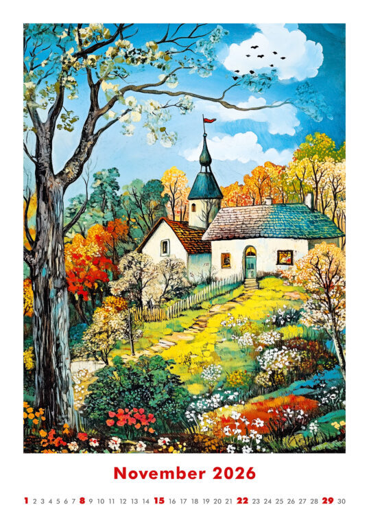 Formát kalendáře: 31,5 x 45 cm Kalendárium: měsíční mezinárodní Rozsah kalendáře: 14 listů Vazba: Twin-wire (se spirálou) Prostor pro přítisk: 31,5 x 7 cm
