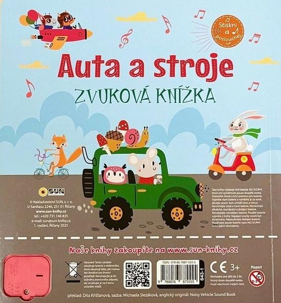 Tato zvuková knížka nejen zabaví, ale také pomůže dětem naučit se pojmenovávat auta a stroje a lépe poznat jejich svět. Interaktivní forma knihy rozvíjí smyslové vnímání, podporuje soustředění a přináší zábavnou formou první poznatky o světě kolem nás.