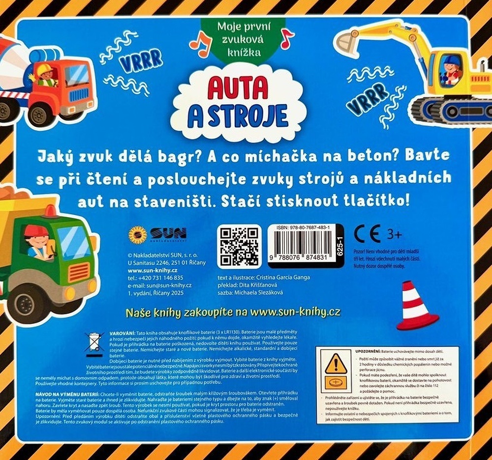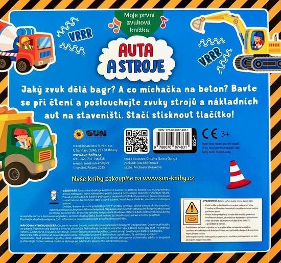 Zvuková knížka Auta a stroje přináší dětem zábavné a poučné seznámení se světem stavebních a dopravních strojů. Díky šesti zvukovým tlačítkům si malí posluchači mohou sami spustit zvuky bagru, míchačky na beton a dalších zajímavých strojů. Při čtení i poslouchání se děti nejen dobře baví, ale zároveň rozvíjejí své smysly – spojení zraku a sluchu podporuje první učení a poznávání světa kolem nich. Úžasné ilustrace zaujmou a provedou děti světem aut a strojů na stavbě i silnici.
