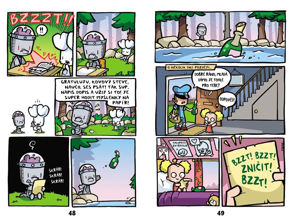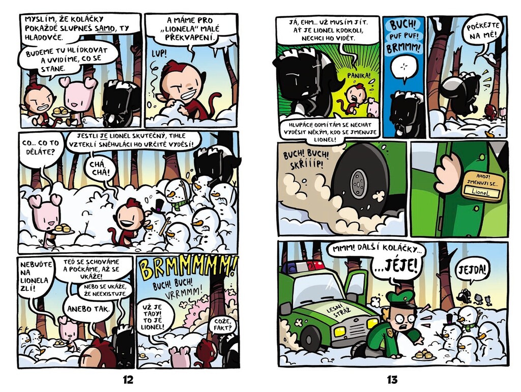 Jamie Smart nelenil a vymyslel další napínavé příhody zodpovědného králíka Banyho a prolhaného opičáka Mankyho. Manky se nudí, v hlavě má jen samé zlomyslnosti, a tak hledá spojence na své tajemné akce. Bany s veverkou a prasátkem mají co dělat, aby se zachránili nebo nad Mankym vyzráli. No a docela se jim to daří. Šarvátek se znovu účastní skunk, který vynalezne, na co jen Manky pomyslí, akční bobr naprosto postrádající pud sebezáchovy a kovový Steve, jenž zmatku vždy nasadí korunu. Akce jsou plné moderních strojů, třeba takové robotické vozidlo vybavené nejmodernějšími technologiemi maskování nebo dokonalý klobásotron či neuvěřitelný mixátor… A do toho všeho se mezi zvířata montují lidé, kteří se chystají postavit přes les silnici, no hrůza! Barevné kresby plné divokých zvratů s vtipnými zápletkami i tentokrát jistě potěší všechny fandy komiksu a humoru. Pokud mezi ně patříš, můžeš se těšit také na třetí pokračování, ještě napínavější - jak jinak.