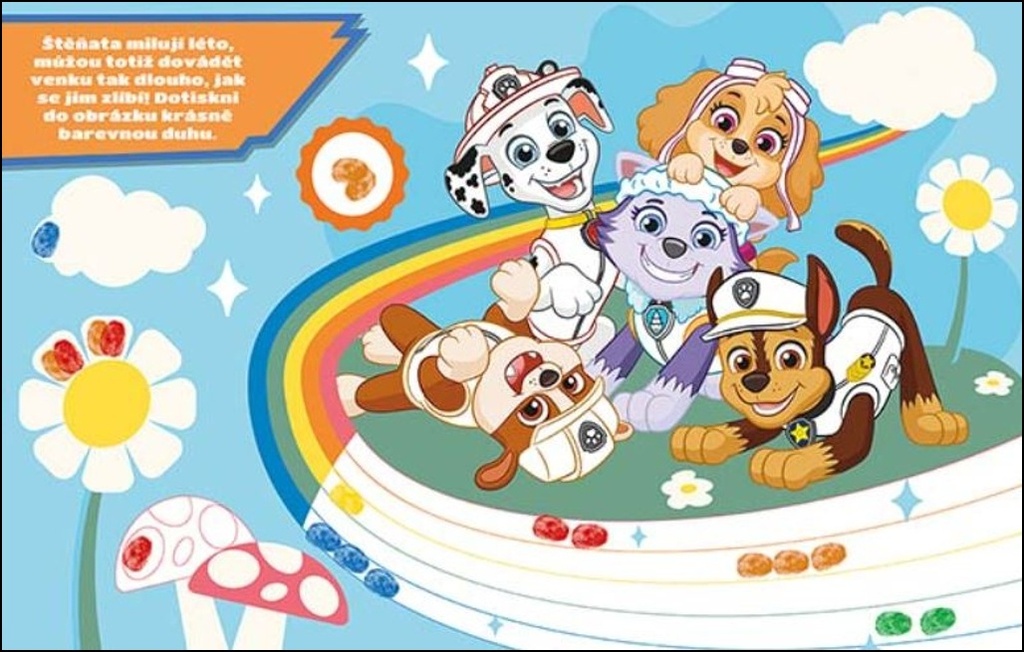 Titul obsahuje 24 stran plných barevných obrázků k dorazítkování prstíky a 6 prstových barev.