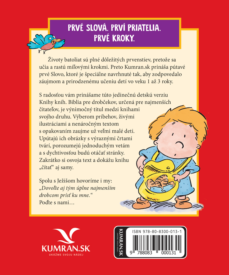 Životy batoliat sú plné dôležitých prvenstiev, pretože sa učia a rastú míľovými krokmi. Preto Kumran.sk prináša pútavé prvé Slovo, ktoré je špeciálne navrhnuté tak, aby zodpovedalo záujmom a prirodzenému učeniu detí vo veku 1 až 3 roky.