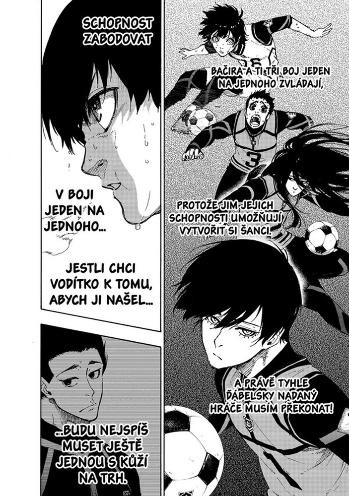 Isagi a Nagi se ocitají bez Bačiry, kterého k sobě přetáhla nejlepší trojice, jíž vévodí Rin Itoši. Musí se vzchopit k dalšímu boji a rovněž vymyslet způsob, jak v příštím zápase zvítězit v situaci, kdy musí hrát sami za sebe a nemohou se spolehnout na cizí přihrávky. Jedině tak totiž stanou po boku dalších geniálních hráčů a získají zpět vše, co ztratili.
