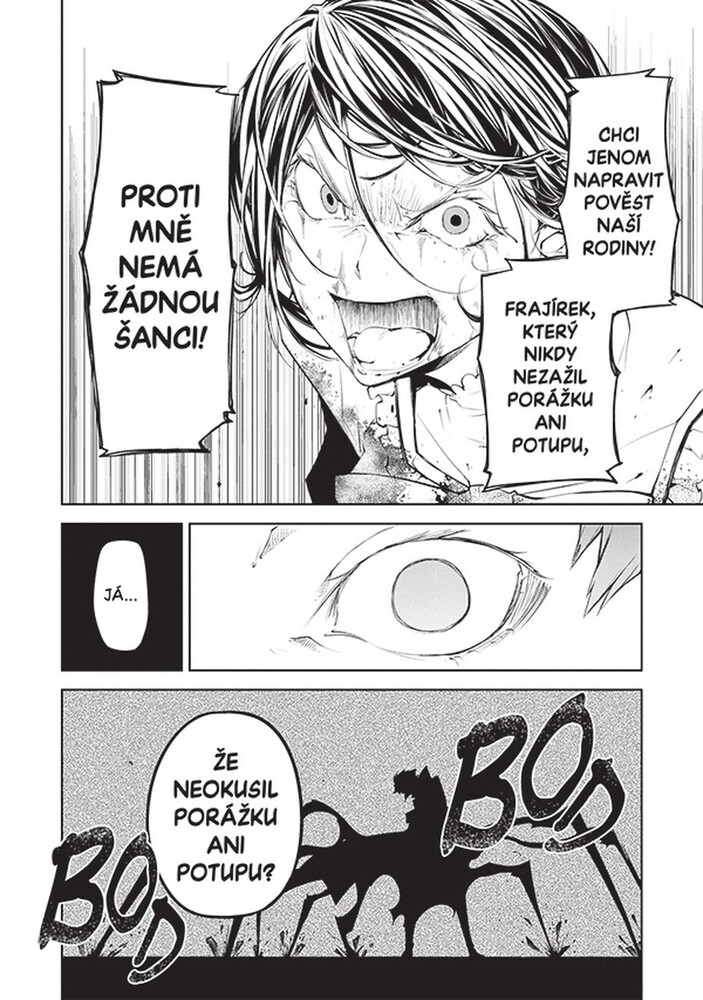 Kunikida a Tanizaki se následně poprvé střetávají s členy Cechu – se Steinbeckem a Lovecraftem, jehož schopnost přesahuje lidské chápání. Chaotická válka tří organizací v šestém svazku nabírá strhující spád!