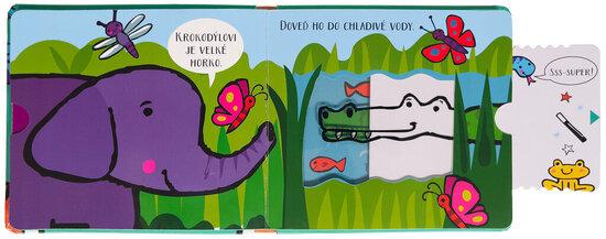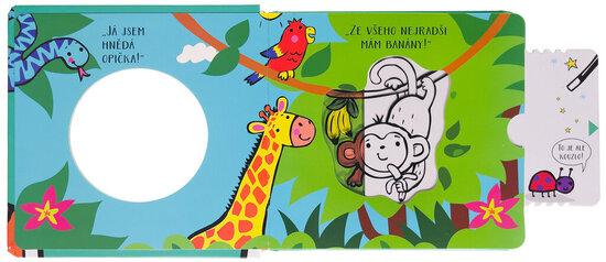 Znáš zvířata, která žijí v džungli? Zjisti, jak se slon ochladí v horkém dni nebo kam se tygrovi ztratily jeho pruhy. Tato interaktivní knížka v dětech vzbudí zvědavost. Obrázky jsou totiž částečně zakryté. Povytažením stránky se ozve zvuk a objeví se zvířátka schovaná v houští nebo na stromě. ...