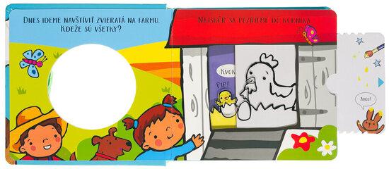 Navštív spolu s deťmi farmu a prezri si zvieratá, ktoré v nej žijú. Zisti, kto sa pasie na pastvine a kto sa ukrýva v kurníku. Táto interaktívna knižka v deťoch vzbudí zvedavosť. Obrázky sú totiž čiastočne zakryté. Povytiahnutím stránky sa ozve zvuk a objavia sa zvieratká schované v kurníku, ...