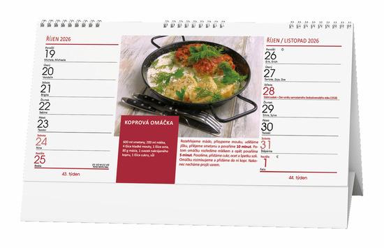 Klasika, která neomrzí. Tradiční stolní kalendář se čtrnáctidenním kalendáriem s českými recepty na každé straně.