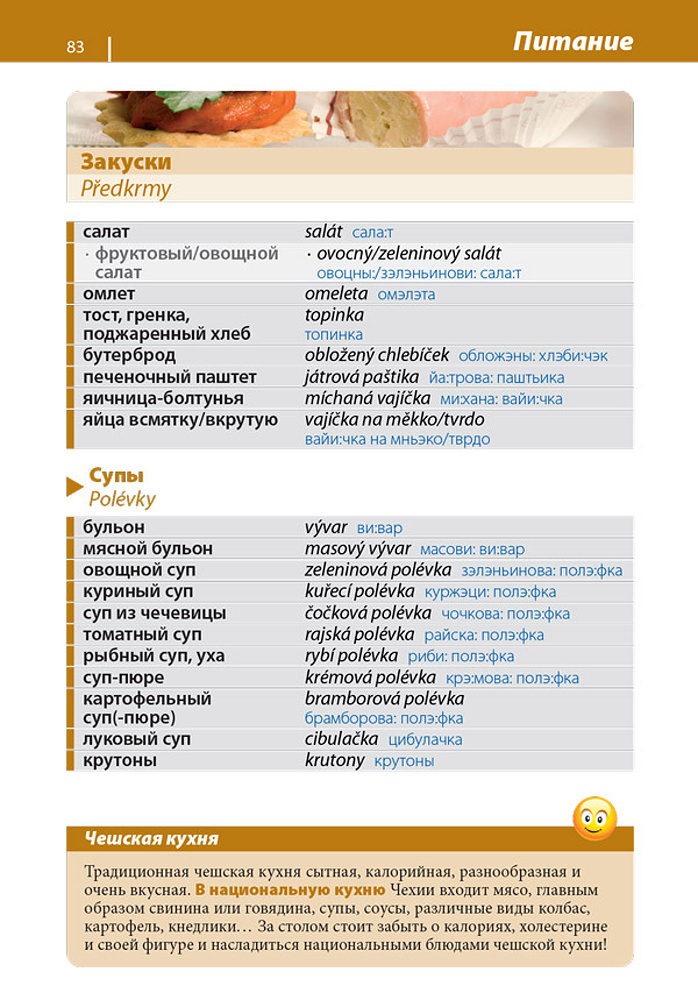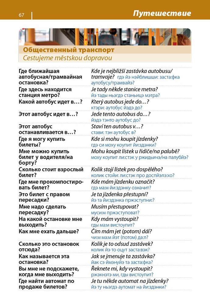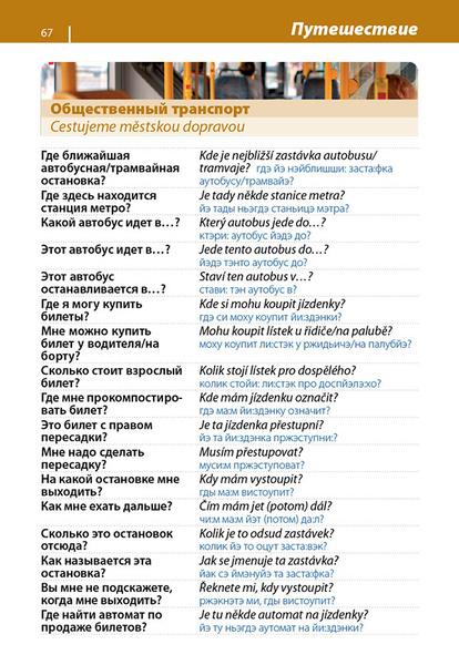 Tato konverzace umožní cizincům se znalostí ruštiny se pohotově dorozumět česky v běžných i nouzových situacích. Důraz je kladen na praktickou aktivní komunikaci, přehlednost a snadnou orientaci v textu. U českých slov a vět je doplněn přepis české výslovnosti prostřednictvím azbuky, cizinec tak věty může snadno přečíst správně česky.