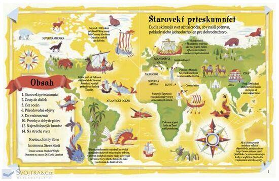 Ľudia už po tisícročia skúmajú svet – aby našli potravu, poklady alebo jednoducho len kvôli dobrodružstvu. Cestovatelia a prieskumníci v minulosti podnikali dlhé a nebezpečné výpravy za obchodom a poznaním, uskutočňovali prvé zámorské plavby, vydávali sa na cesty do divokej prírody, snažili sa svet zmapovať, súperili o to, ktorý štát bude prvý na ľadových póloch, kto pokorí najvyššiu horu sveta. Počas nedávnej minulosti sa snažili ako prví vzlietnuť do vesmíru, prvýkrát kráčať na Mesiaci... Poďte s nimi objavovať. S touto knihou to bude ľahké a zábavné.