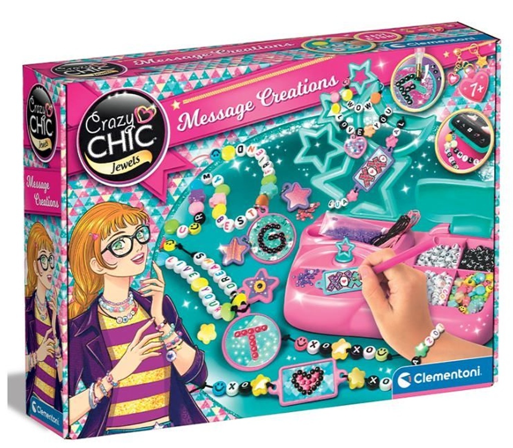 Zcela nová sada Crazy Chic pro udržení aktuálního stavu s nejnovějšími trendy ve šperkařství. Sada pro vytváření trendových šperků a doplňků s písmeny, barevnými korálky, třpytivými kamínky a elastickými šňůrkami. Podstavec má tři části: prostor pro zdobení přívěsků a talířů barevnými kamínky, přihrádku na dělení korálků a držák na šperky pro odkládání výtvorů. Živé barevné náramky a náhrdelníky, na které mohou dívky napsat své jméno nebo oblíbené jmenovky, aby plně vyjádřily svůj kreativní talent a jedinečný styl. Inspirativní hra, která popustila uzdu dívčí fantazii, oceňuje kreativitu a jedinečnou osobnost každé Crazy Girl!