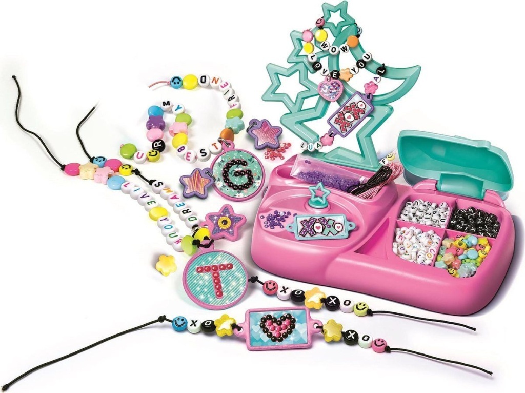 Zcela nová sada Crazy Chic pro udržení aktuálního stavu s nejnovějšími trendy ve šperkařství. Sada pro vytváření trendových šperků a doplňků s písmeny, barevnými korálky, třpytivými kamínky a elastickými šňůrkami. Podstavec má tři části: prostor pro zdobení přívěsků a talířů barevnými kamínky, ...