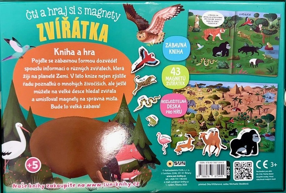 Jedinečný hrací set, který spojuje poučnou encyklopedii s interaktivní zábavou. Obsahuje 43 magnetických ZVÍŘÁTEK, velkou magnetickou desku a bohatě ilustrovanou knihu plnou zajímavých informací o užasných zvířatech, kteří obývají spolu s námi planetu Zemi. Děti se zábavnou formou naučí množství poznatků, zatímco na velké deskové ploše hledají správná místa pro zvířátka a umisťují magnety.