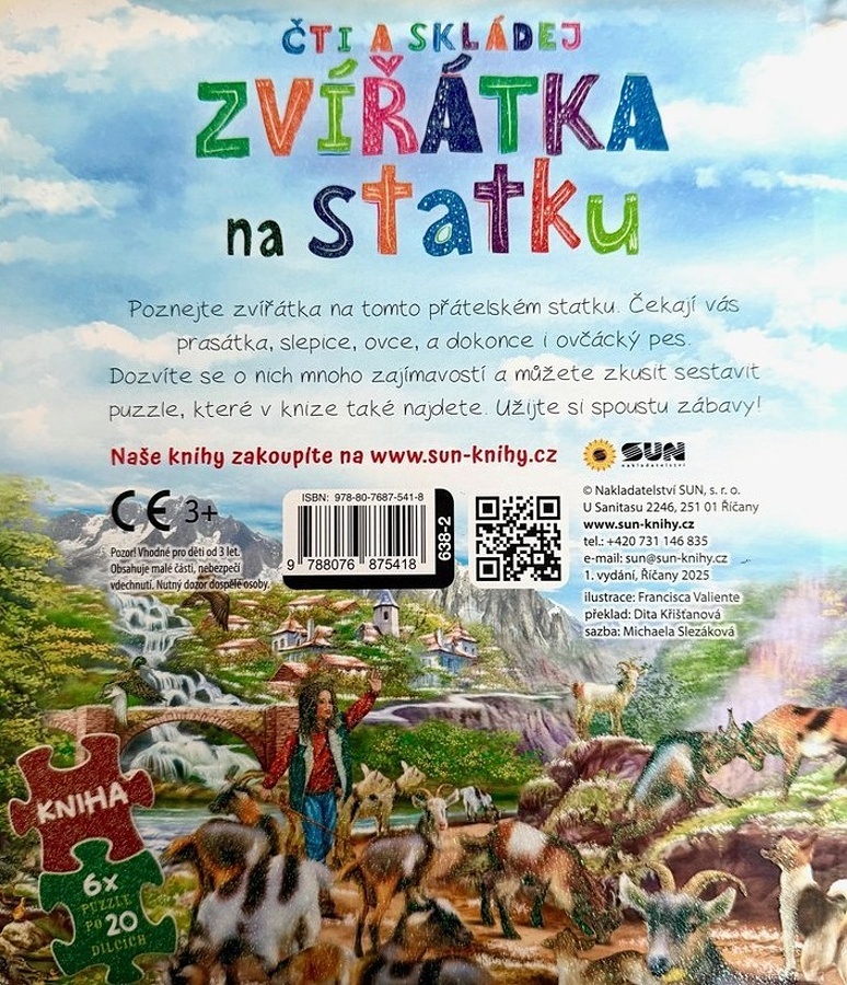 Poznejte svět na farmě zblízka prostřednictvím velkolepých obrázků. Poznejte zvířátka, která žijí na tomto užasném statku, čekají na vás prasátka, slepice, ovečky i ovčáský pes. V knize také najdete 6 puzzle, každé s 20 dílky. Je sestaveno tak, aby zároveň poskytovalo bezpečné uchopení a ...