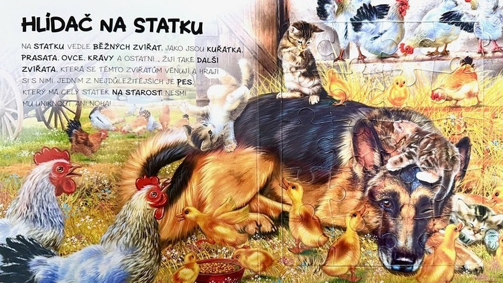 V knize také najdete 6 puzzle, každé s 20 dílky. Je sestaveno tak, aby zároveň poskytovalo bezpečné uchopení a povzbuzovalo k objevování: charakteristické kontury, opakující se vzory a jasně rozlišitelné barevné plochy dětem pomohou začít a bohaté detaily je motivují k vytrvalosti. Proces stavění posiluje trpělivost, přesnost a samostatnou práci – to vše bez nucení, v hravém prostředí.