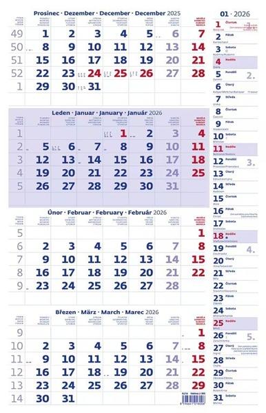 Čtyřměsíční kalendář modrý s poznámkami - nástěnný kalendář