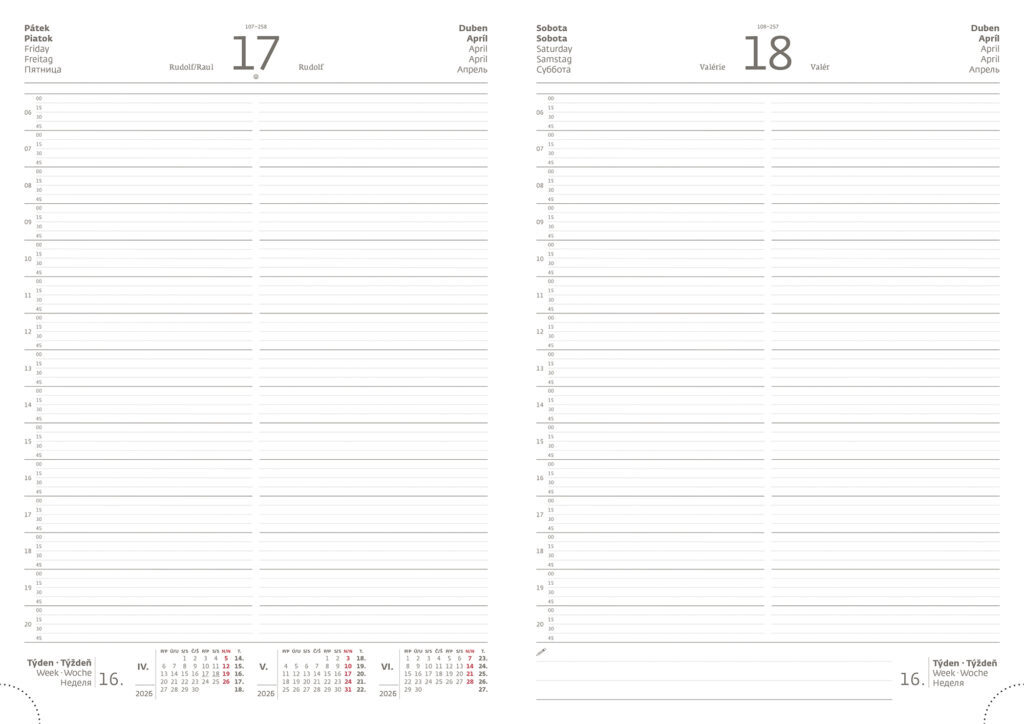 Formát diáře: 210 x 297 mm Rozsah diáře: 400 stran Kalendárium: denní