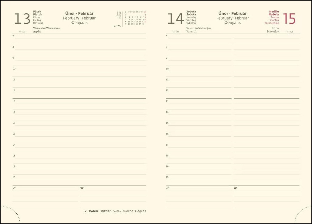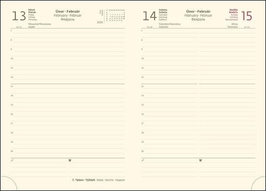 Formát diáře: 145 x 205 mm </br> Rozsah diáře: 352 stran </br> Kalendárium: denní </br> + poutko na tužku </br> + papír bloku chamois