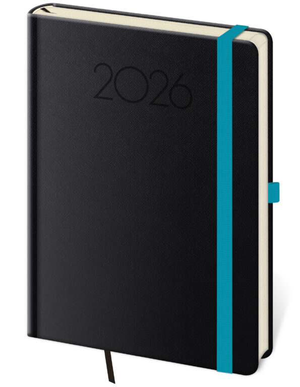 Denní diář 2026 A5 New Praga černý s gumičkou