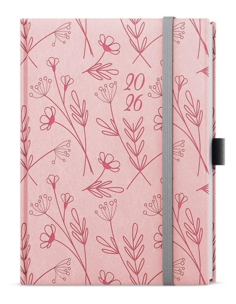 Denní diář v růžové vivelle s krásnou celoražbou motivu Kvítí. Diář v B6 formátu s velkým prostorem pro poznámky a plánování.