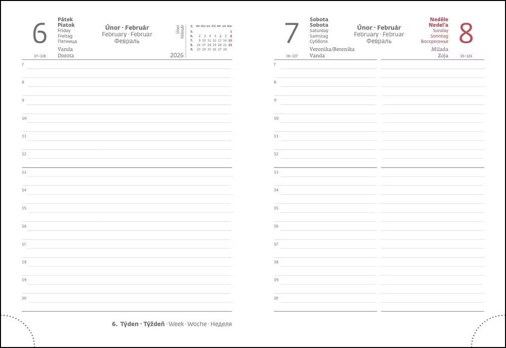 Formát diáře: 120 x 165 mm Rozsah diáře: 336 stran Kalendárium: denní