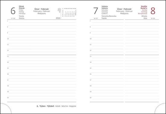Formát diáře: 120 x 165 mm Rozsah diáře: 336 stran Kalendárium: denní