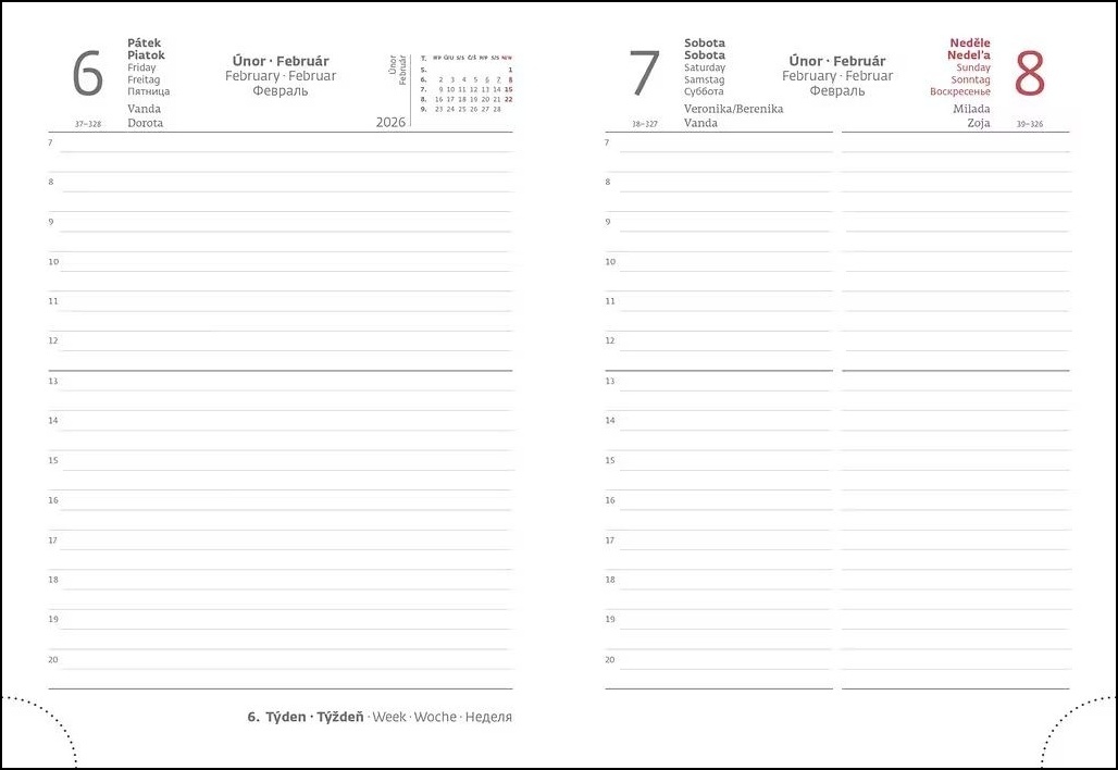 Formát diáře: 120 x 165 mm Rozsah diáře: 336 stran Kalendárium: denní