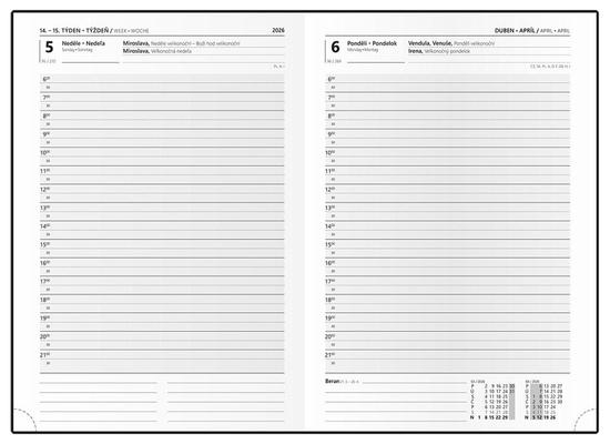 Denní diář A5 vyrobený z oblíbeného materiálu a s jednoduchou ražbou. Výjimečností tohoto diáře je, že soboty i neděle jsou na každé stránce zvlášť.