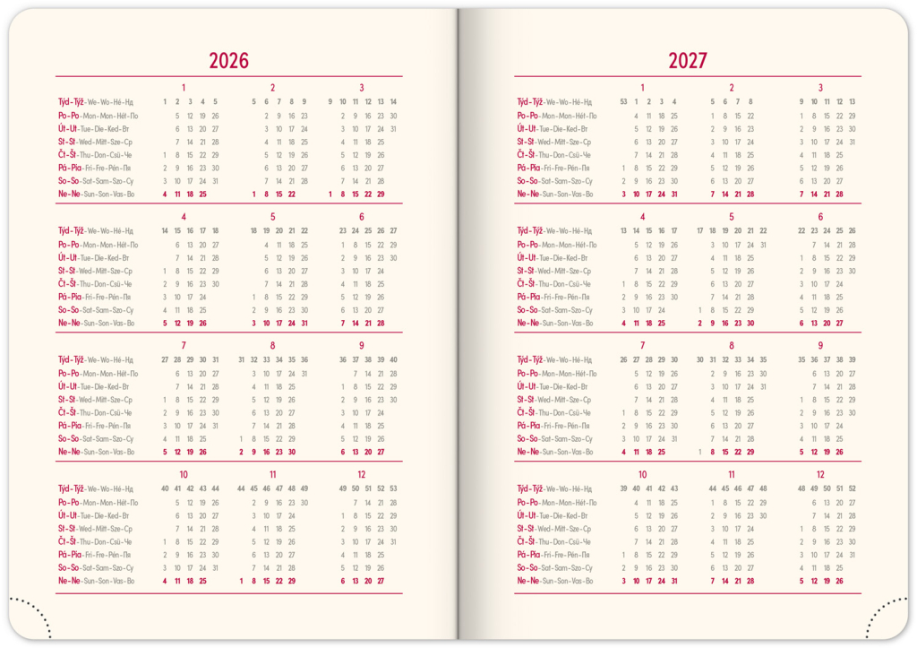 Denní diář Diamante 2026 v černé barvě. Povrch diáře má jemnou strukturu připomínající výbrus diamantu a je ideální pro všechny typy ražeb. Diář má zakulacené rohy, poutko na tužku a elastickou gumičku. Denní rozvrh s česko-slovenským kalendáriem a doplňkovou angličtinou, němčinou, maďarštinou a ...