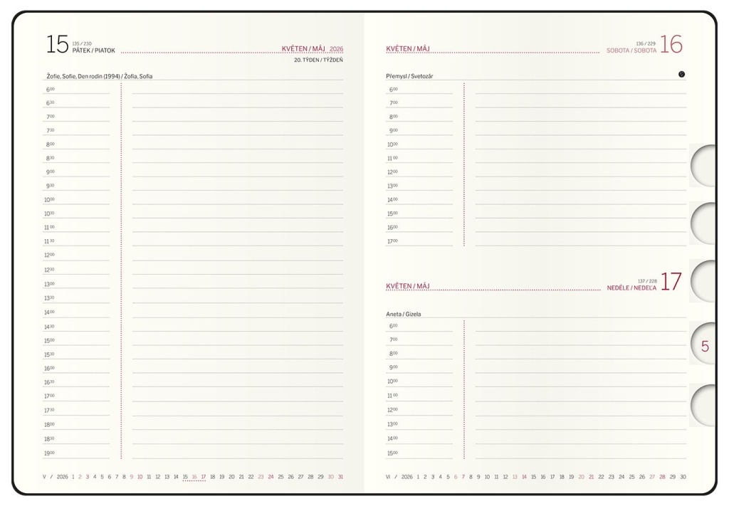 Denní manažerský diář ve větším formátu B5 je ideálním pomocníkem pro efektivní plánování schůzek, úkolů i volného času. Nová elegantní grafika zajišťuje maximální přehlednost vašich poznámek, zatímco moderní matný tyrkysový obal dodává diáři luxusní vzhled. Perfektní volba pro manažery a všechny, kteří chtějí mít svůj čas pod kontrolou.