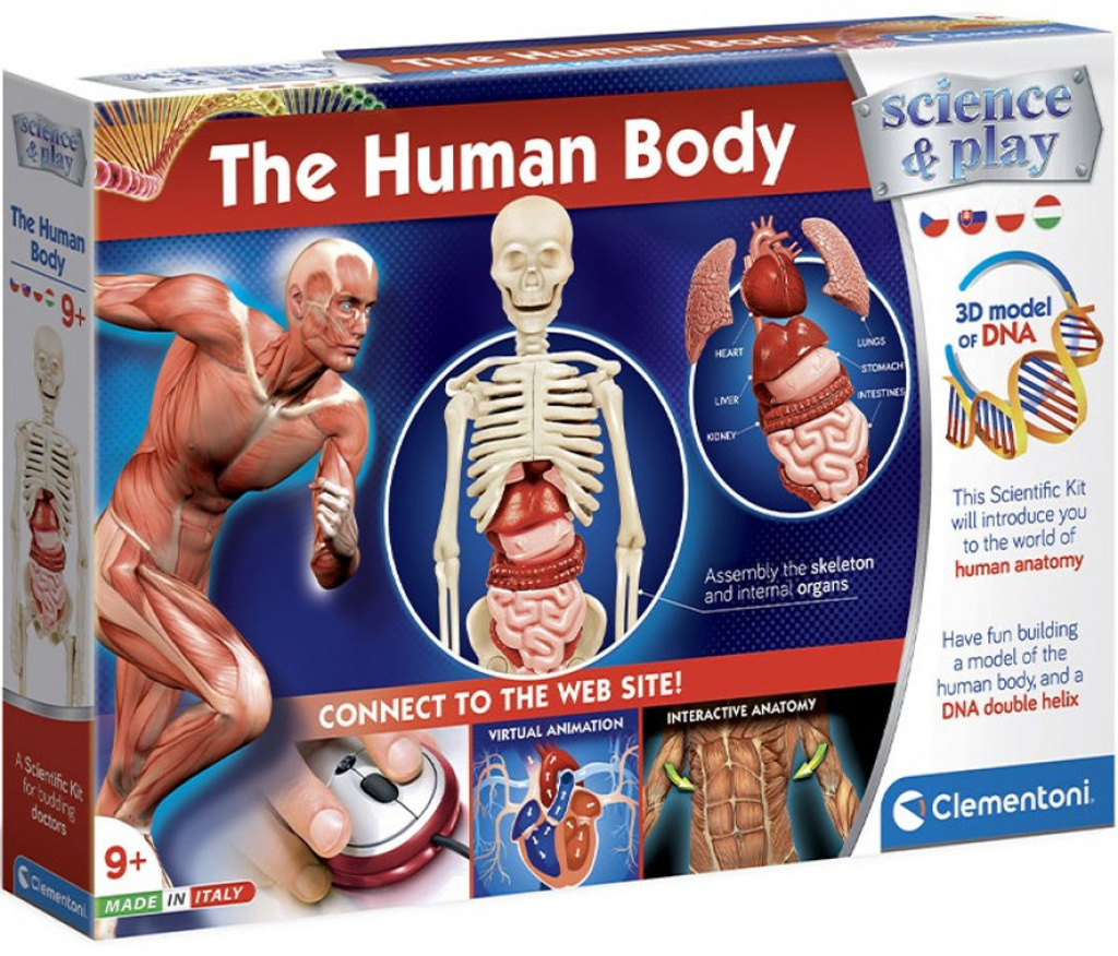 Díky této úžasné sadě CLEMENTONI Dětská laboratoř – lidské tělo se děti jednoduše a snadno dozví zajímavé informace o lidské anatomii. Učení začíná při sestavování realistického modelu lidského těla – kostry a vnitřních orgánů jako jsou například srdce, játra, ledviny a střeva. Užijte si zábavu při sestavování DNA. Sada pomáhá rozvíjet manuální dovednost a kreativitu. Sada obsahuje: Prvky modelu DNA – hadička na konstrukci DNA, stojan na model DNA. Kostra a vnitřní orgány člověka – kostra + vnitřní orgány člověka, základna na kostru. Obrázková příručka. Rozměr balení: 45,1 x 31,1 x 7 cm. Věk: 9+