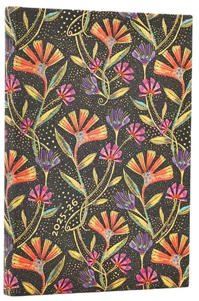 18-ti měsíční diář Laurel Burch byla umělkyní, která tvořila brilantně barevná, živá a pohyblivá témata pomocí barvy a papíru, nádherně zdobená zlatem a stříbrem. Tento design Wild Flowers, který je poctou nekonečné blaženosti květin, symbolizuje rozkvět ducha stejně jako krásu krásné zahrady.