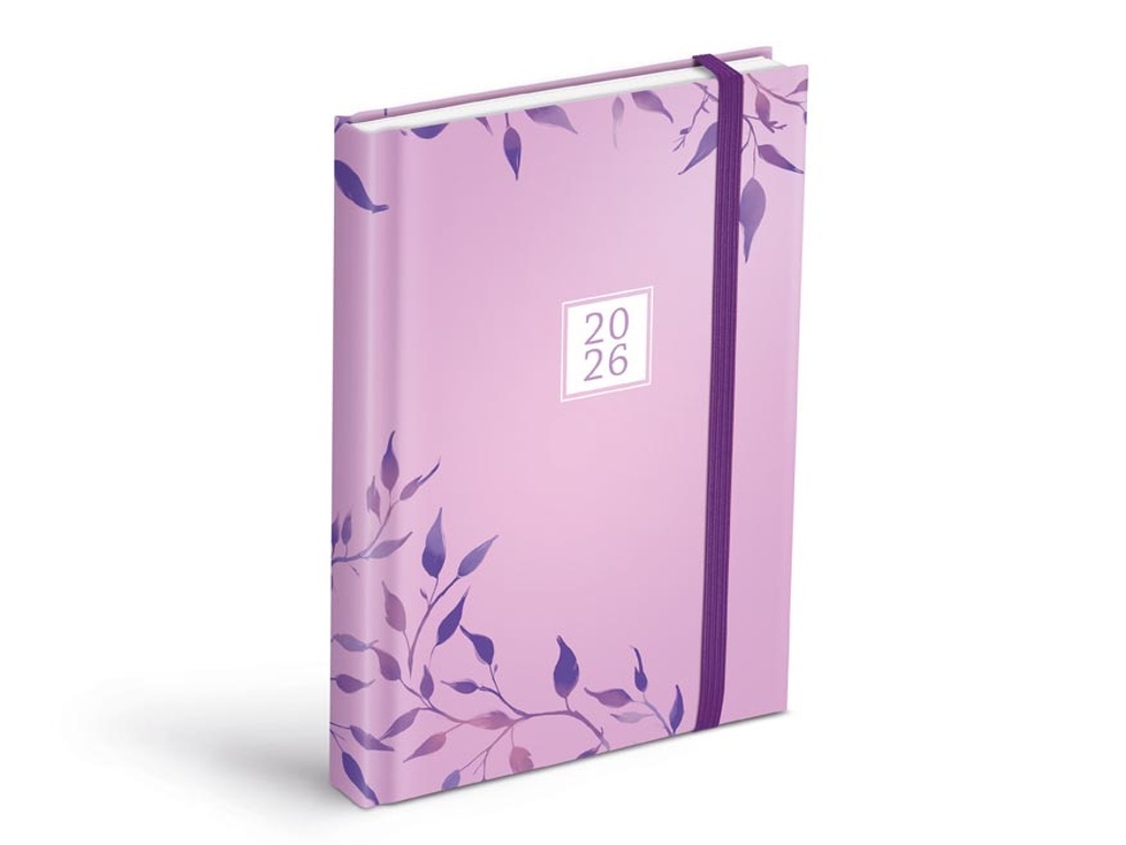 Jemnost a řád v jednom! Plánujte s lehkostí a stylem! Tento denní diář A5 pro rok 2026 okouzlí jemným fialovo-růžovým podkladem s decentními větvičkami ve fialových tónech. Díky praktické gumičce ve výrazném odstínu zůstane vše, co si zapíšete, bezpečně uzavřeno – a vždy po ruce. Obálka je chráněna lesklým laminem, které zajišťuje odolnost i elegantní vzhled. Vnitřní denní rozvržení vám pomůže mít každý den přehledně pod kontrolou – ať už jde o školu, práci nebo osobní plány. Odtrhávací spodní rožky navíc umožňují rychlé nalistování aktuálního dne.