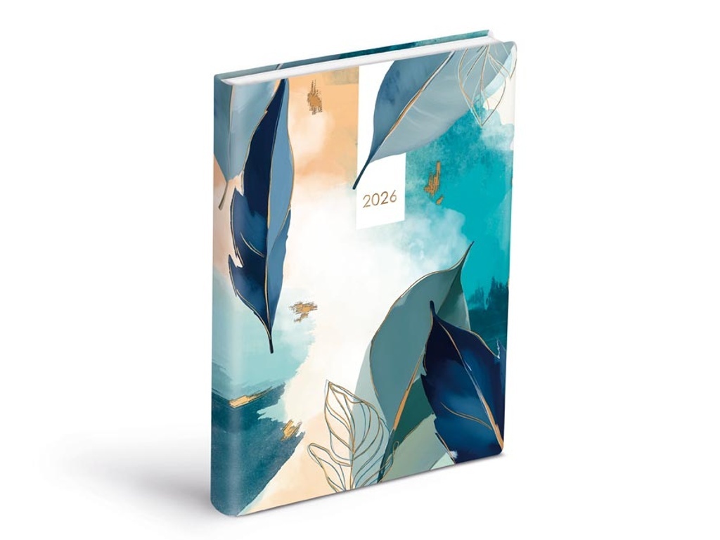 Plánování s nádechem přírody! Denní diář 2026 ve formátu A5 zaujme originálním motivem listů v tónech modré, tyrkysové a béžové s jemnými zlatými akcenty. Design působí svěže, nadčasově a zároveň umělecky – ideální pro ty, kdo mají rádi čistou estetiku a přehlednost. Obálka je vyrobena z měkkého materiálu s povrchem PU soft – sametově hebkého na dotek a odolného vůči každodennímu používání. Odtrhávací spodní rožky umožňují snadné a rychlé nalistování aktuálního dne – praktický detail, který oceníte při každodenním plánování. Uvnitř se nachází denní rozvržení, které nabízí dostatek prostoru pro poznámky, schůzky i úkoly.